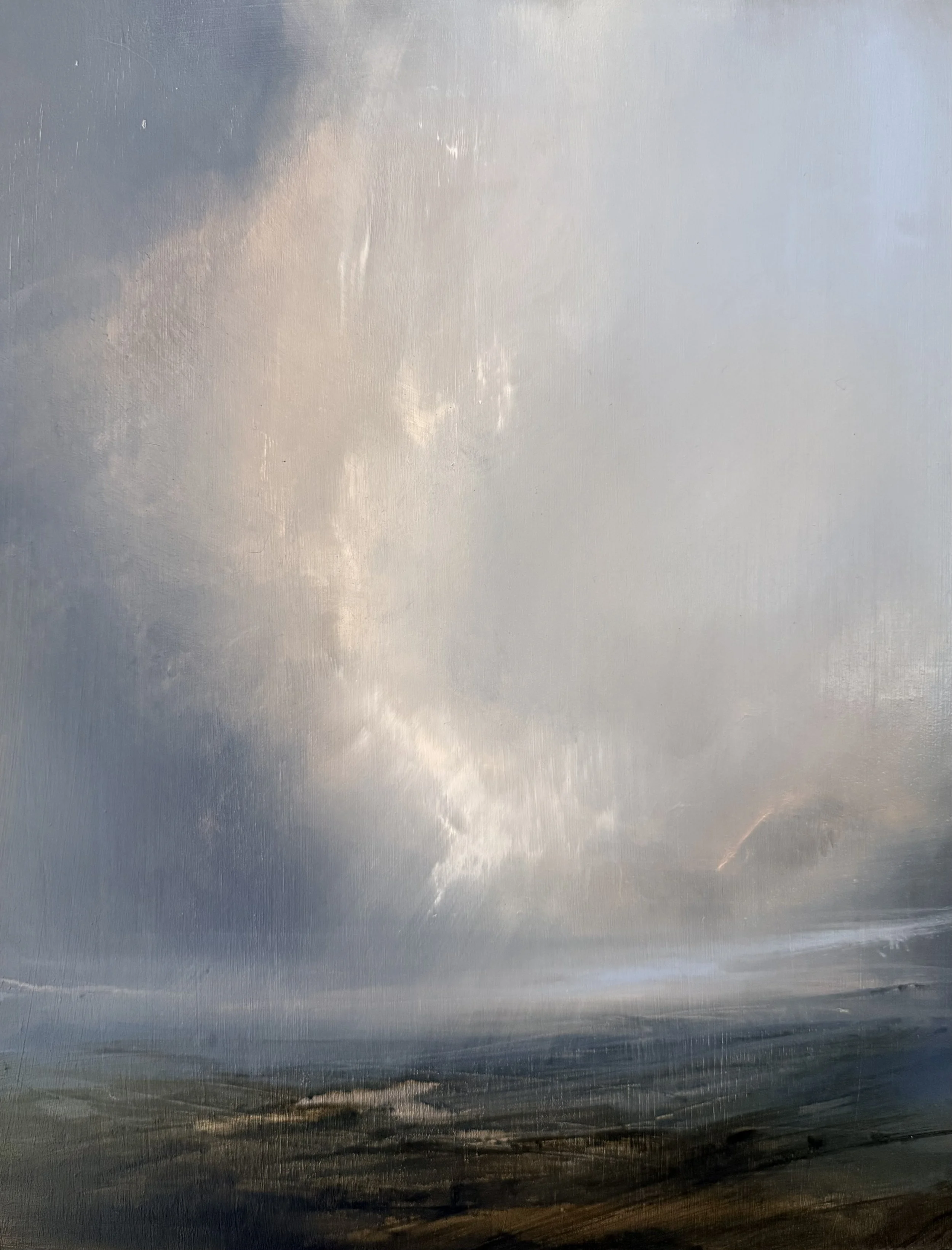 The interplay between abstraction and figuration lies at the heart of the work, inspired deeply by the shifting qualities of light. Influenced by the subtle nuances of colour and form of natural landscapes, the pieces explore the tension between structure and fluidity, capturing the fleeting essence of land, sky, and atmosphere. Through layered brushstrokes and expressive movements, each piece reflects the dynamic balance between intention and spontaneity, evoking the transformative energy within nature.